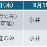【緊急告知】永井隆子医師体調不良のため、本日(9月19日)金曜日は永井康太医師の代診となりま す。